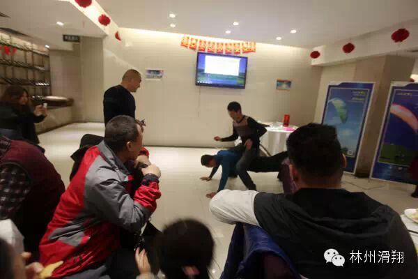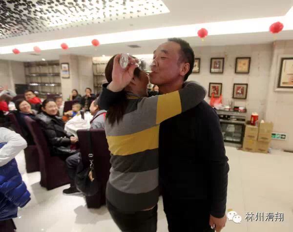 在晚宴中间的抽奖环节,是整个年会最神奇的时段。奖项的设置是随机的,但奖项的归属就好像冥冥中的“某种注定”,几乎我们每一个在抽奖环节被抽中的朋友,都实现了自己的“量身定制”。阿王同学两次中奖,一次与嫂子共饮交杯酒,一次背嫂子绕场一周,尤其是阿王的现场感言,道尽了对妻子的感激和深情,相信一定打动了在场的不少人。李武翼童鞋应该是当晚最大的赢家,预知究竟囊收哪些大奖,请咨询当事人哦。梁辰童鞋的收获也是不小的,现场的“深情”表白,最起码咱下半辈子有着落了,不是吗?丫头也幸运的被摇到了一次抽奖机会。神奇的是亲自抽到了自己设置的,同时也是自己最想要的结果,给我们尊敬可爱的孔爷爷一个大大的拥抱。这几年林州滑翔的发展,离不开孔爷爷亲力亲为的倾力付出,林州滑翔团体的每一位工作人员诚挚的感谢孔爷爷的每一份付出。